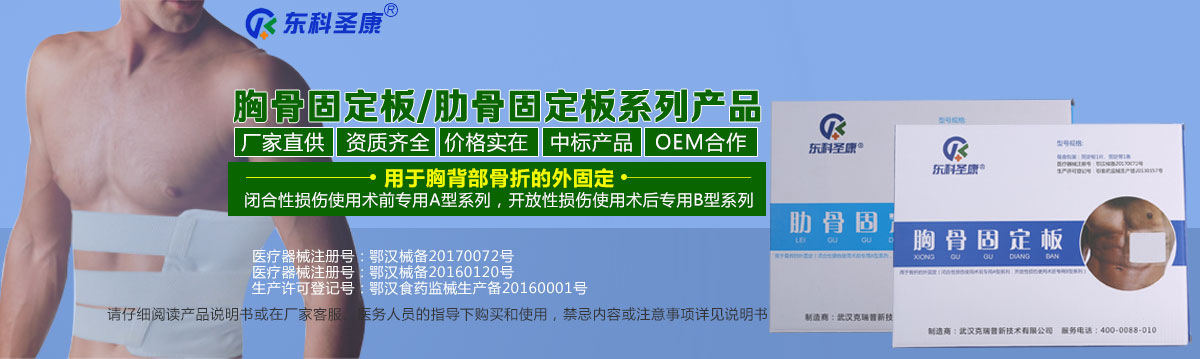 東科圣康牌胸骨固定板、肋骨固定板系列產(chǎn)品(又稱:胸部護(hù)板),密封包裝,輻照滅菌(可進(jìn)手術(shù)室),可進(jìn)入社會(huì)醫(yī)療保險(xiǎn)和新型農(nóng)村合作醫(yī)療收費(fèi),全套醫(yī)療器械耗材生產(chǎn)注冊資質(zhì)齊全,規(guī)格型號多,質(zhì)量合格穩(wěn)定,在全國30多個(gè)省市政府醫(yī)療機(jī)構(gòu)集中采購項(xiàng)目,和公立醫(yī)療機(jī)構(gòu)陽光采購項(xiàng)目中標(biāo),適用于胸外科、骨科、腫瘤科、急診科、理療科、整形科、120現(xiàn)場急救、ICU、康復(fù)科等科室。。